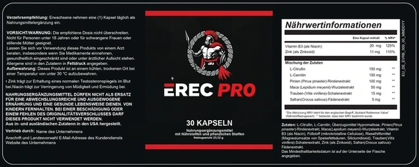 ErecPro Germany Austria Ultimatives Nahrungsergänzungsmittel für Männer: Baut Muskeln und Kraft auf und steigert die Energie.